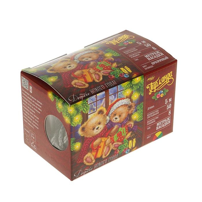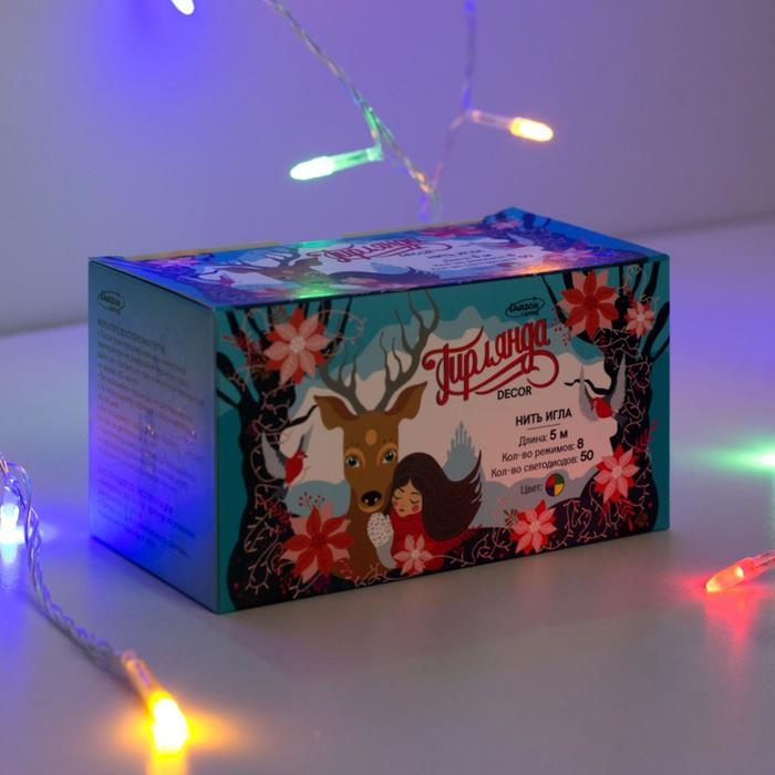 Гирлянда «Нить» 5 м с насадками «Игла», IP20, прозрачная нить, 50 LED, свечение мульти, 8 режимов, 220 В