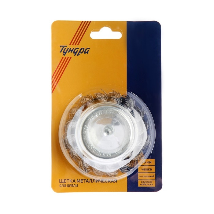 Щетка металлическая для дрели ТУНДРА, со шпилькой, крученая проволока, "чашка", 75 мм