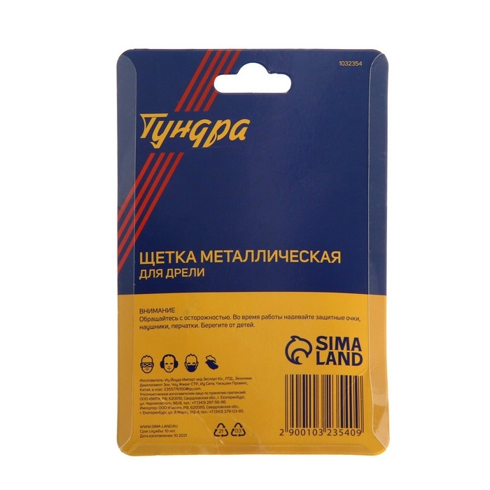 Щетка металлическая для дрели ТУНДРА, со шпилькой, плоская, 100 мм