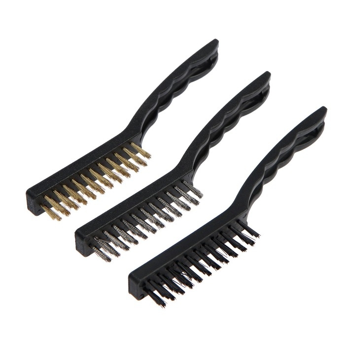 Набор щеток металлических ручных ТУНДРА, пластиковые рукоятки, малые, 3 шт.