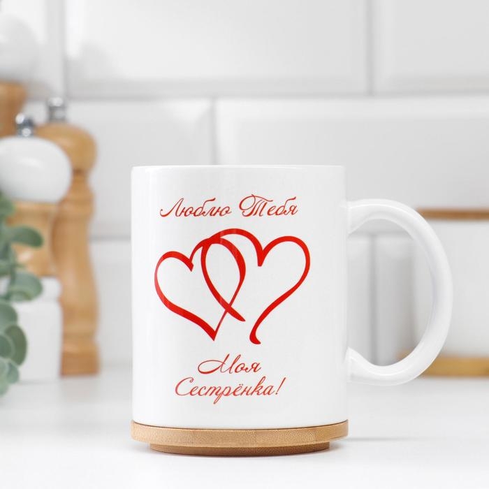 Кружка сублимация "Любимой сестре" мишка, c нанесением