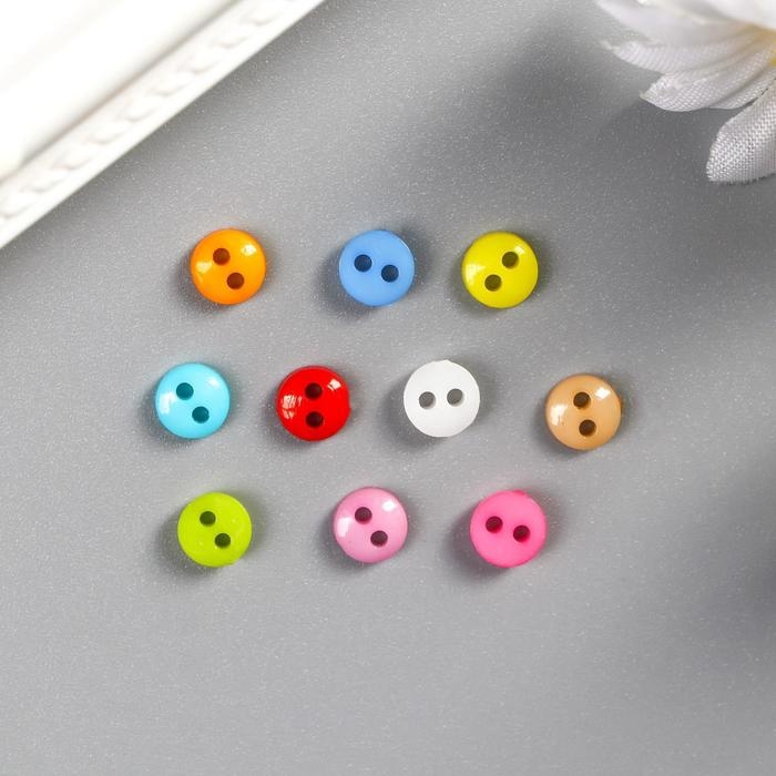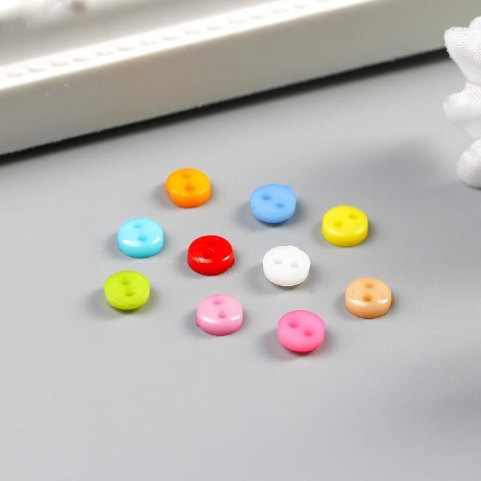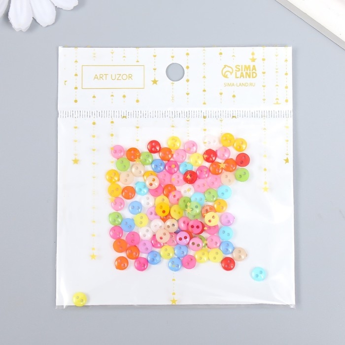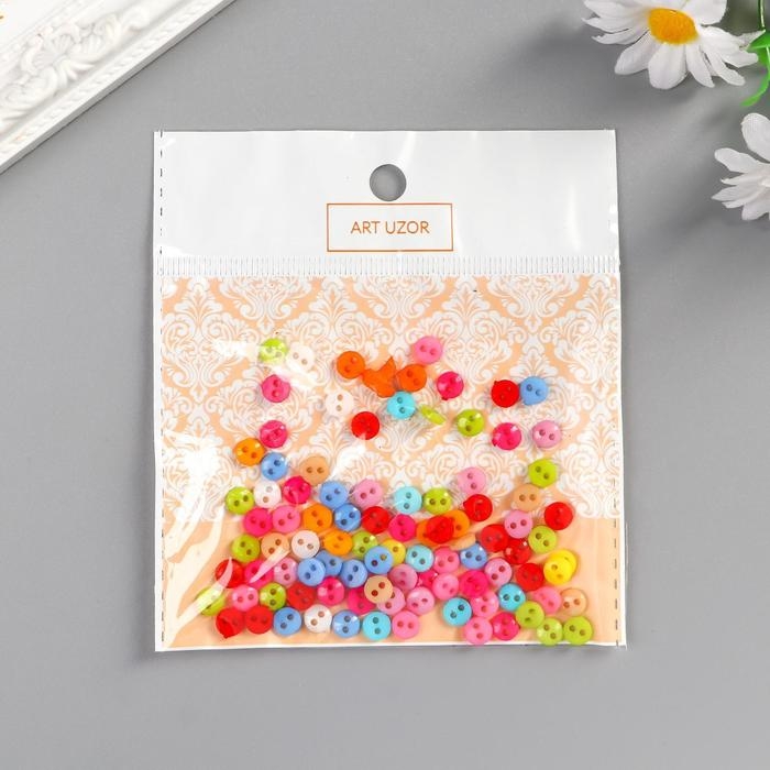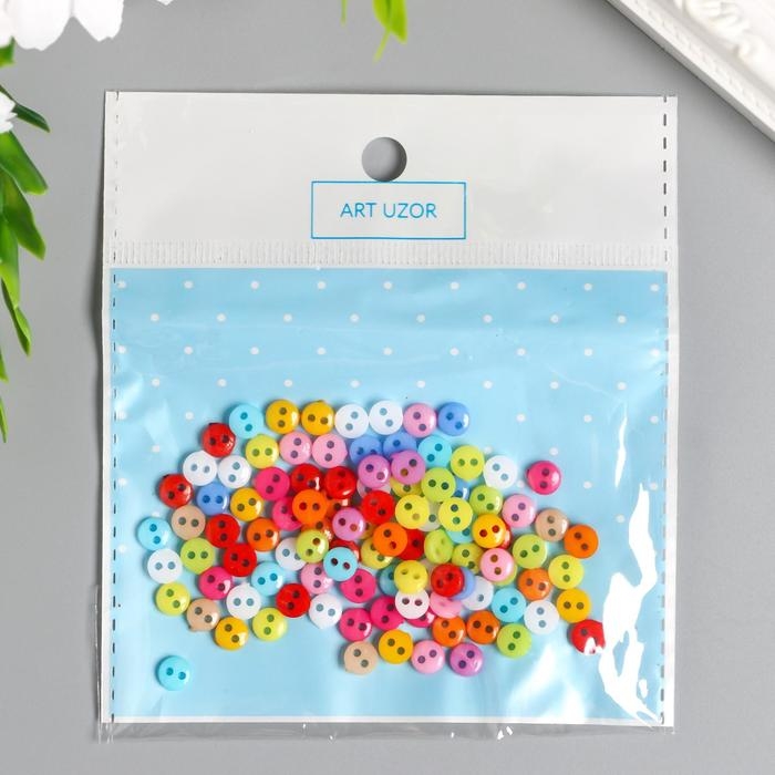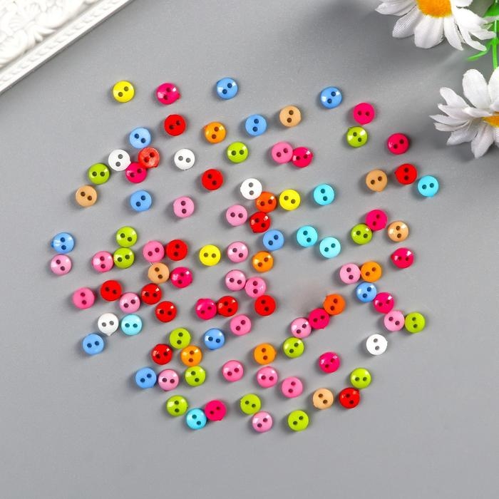 Пуговицы пластик для творчества 2 прокола "Цветные пуговички" набор 100 шт 0,6х0,6 см