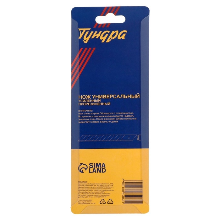 Нож универсальный ТУНДРА — отличный помощник как в строительстве и ремонте, так и в быту. Такой инструмент поможет быстро и ровно раскроить обои и напольные покрытия, вырезать различные узоры и многое другое. Эргономичная рукоятка удобно лежит в руке во время работы.