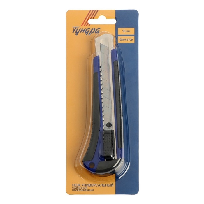 Нож универсальный ТУНДРА, металлическая направляющая, 2К корпус, 18 мм