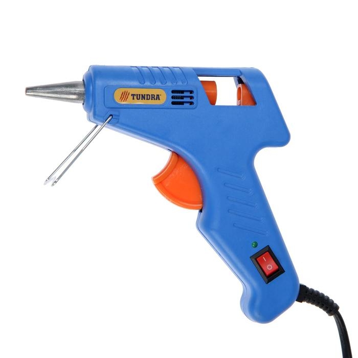 Клеевой пистолет ТУНДРА, 20 Вт, 220 В, выключатель, индикатор, длинное сопло, 7 мм