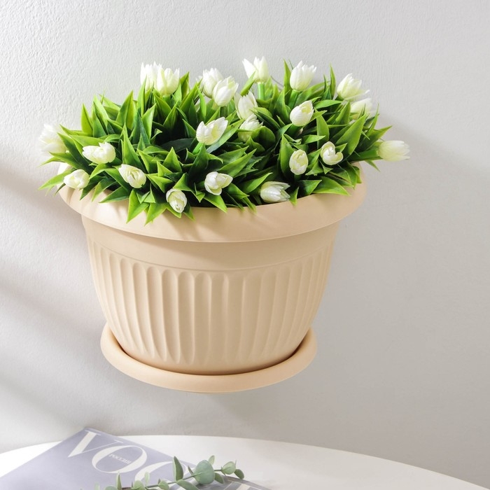 Горшок с поддоном настенный «Ливия», 4,6 л, цвет белая глина