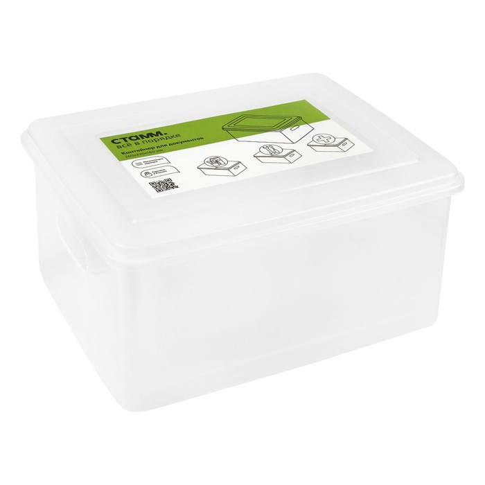 Контейнер для документов Стамм А4, 260 х 350 х 160 мм, пластик, прозрачный, вместительный корпус