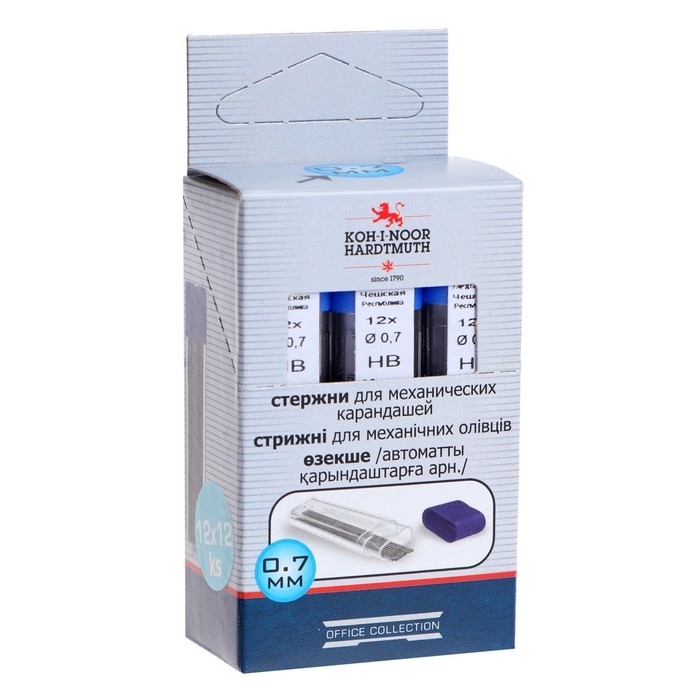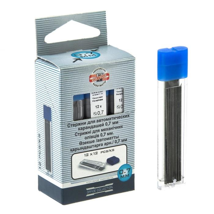 Грифели для механических карандашей, 0.7 мм, Koh-I-Noor, 4162 HB, 12 штук, в футляре