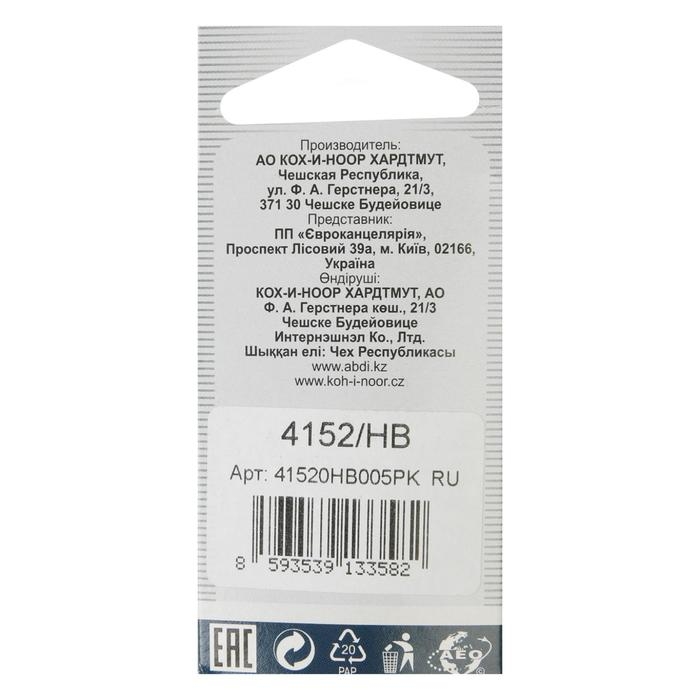Грифели для механических карандашей 0.5 мм, Koh-I-Noor 4152 HB, 12 штук, в футляре