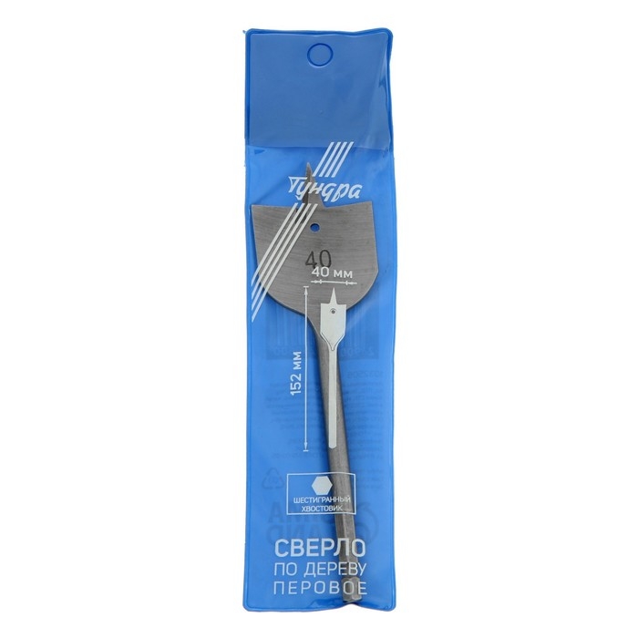 Сверло по дереву перовое ТУНДРА, шестигранный хвостовик, 40 х 152 мм