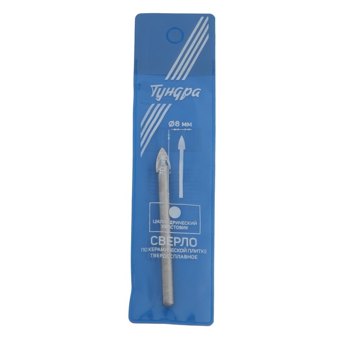 Сверло по керамике твердосплавное ТУНДРА, цилиндрический хвостовик, 8 мм
