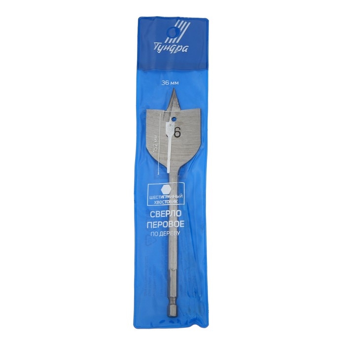 Сверло по дереву перовое ТУНДРА, шестигранный хвостовик, 36 х 152 мм
