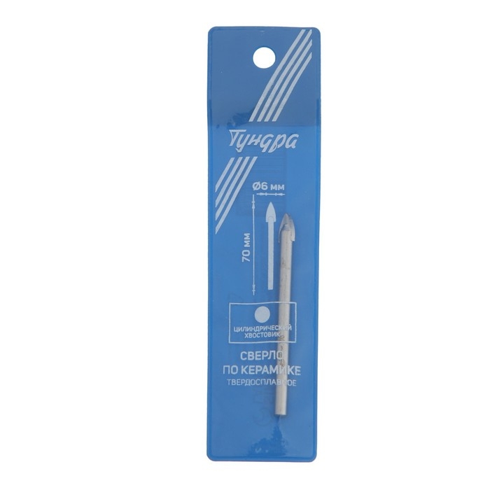 Сверло по керамике твердосплавное ТУНДРА, цилиндрический хвостовик, 6 мм