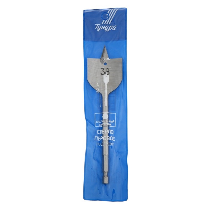 Сверло по дереву перовое ТУНДРА, шестигранный хвостовик, 38 х 152 мм