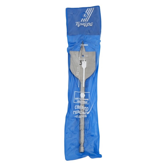 Сверло по дереву перовое ТУНДРА, шестигранный хвостовик, 35 х 152 мм
