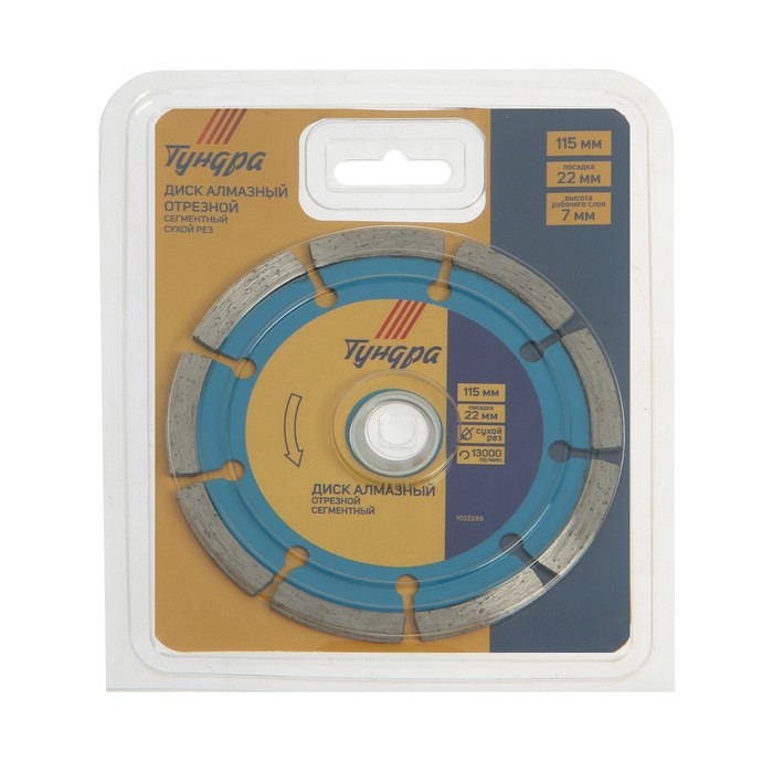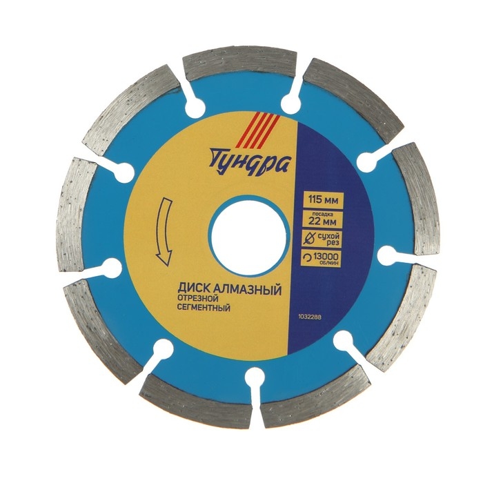 Диск алмазный отрезной ТУНДРА, сегментный, сухой рез, 115 х 22 мм
