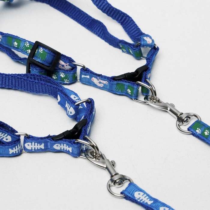 Комплект амуниции с мягкой шлейкой, поводок 120 х 1 см, ОГ 34-58 см, синяя клетка