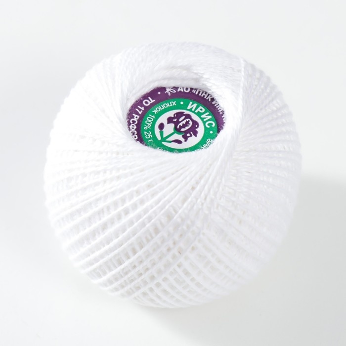Уникальные нитки вязальные "Ирис" 150м/25гр 100% мерсеризованный хлопок цвет 0101 из 100% мерсеризованного хлопка. Он отличается от обычного особым способом обработки. Благодаря этому волокно обретает высокую прочность, устойчивость к истиранию и мягкость. Вязаное полотно получается ровным, с лёгким глянцевым блеском и отлично подходит для жаркой летней погоды. Многие рукодельницы вяжут как спицами, так и крючком, ведь в работе нить приятная и послушная. Хотите верхний трикотаж, хотите ажурные узоры, сетки, салфетки, занавески, скатерти и даже покрывала. А так как она достаточно тонкая, то и машинное вязание вам будет по плечу.