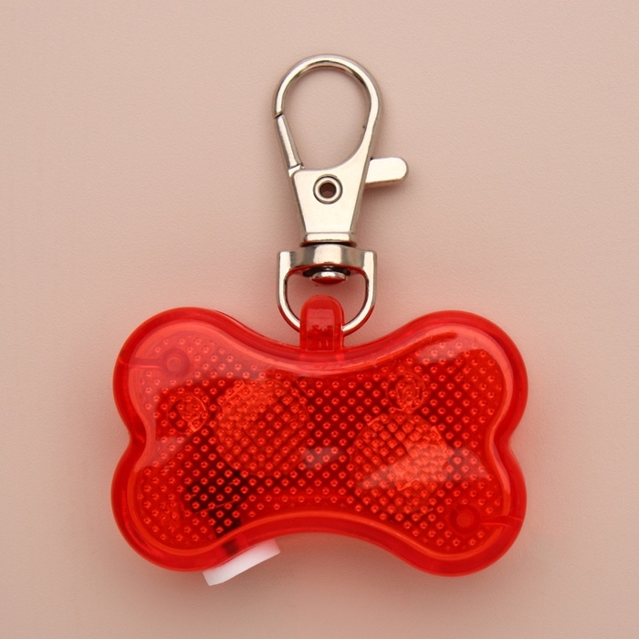 Маячок-адресник "Косточка" с наклейкой под записку, 3 режима свечения, красный
