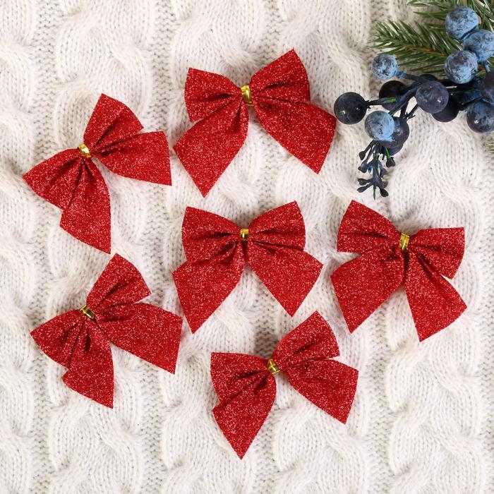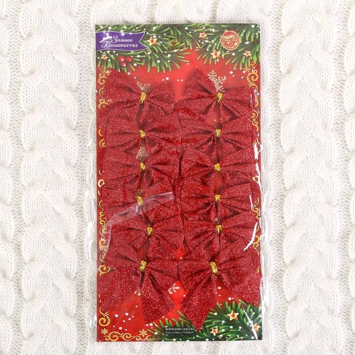 Украшение ёлочное "Бантик - блеск" (набор 12 шт) 4,5х5,5 см, красный