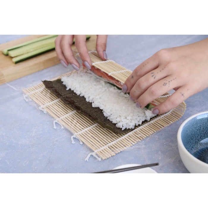Традиционный инструмент для приготовления суши и роллов – это циновка макису или по-другому бамбуковый коврик. Это простое, но надёжное приспособление, которое поможет сформировать форму блюда.