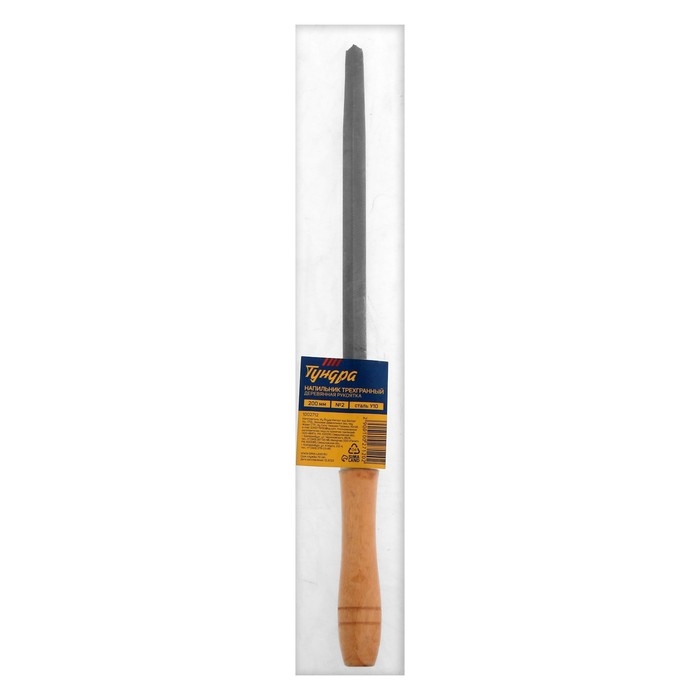 Напильник ТУНДРА, трехгранный, сталь У10, деревянная рукоятка, №2, 200 мм