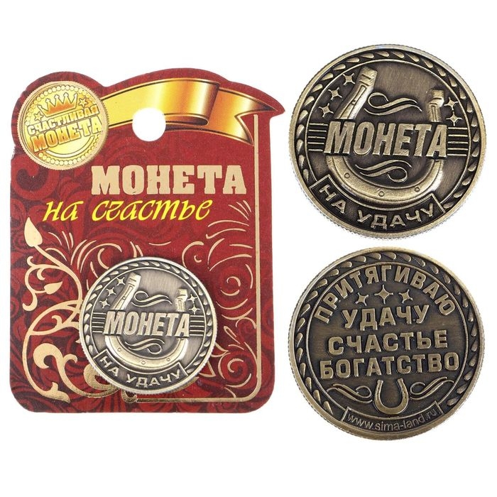 Монета сувенир «Удача, счастье и богатство», d=2,5 см. станет символом Вашего финансового благосостояния! У неё есть 2 стороны: «орёл» — на удачу, а «решка» — на богатство. Изделие обрамлено эффектной упаковкой в виде мощного и надёжного сейфа.