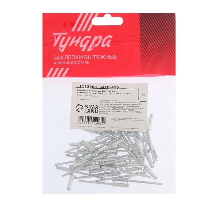 Заклёпки ТУНДРА krep, вытяжные, алюминий-сталь, 4,8х10 мм, неокрашенные, 50 шт