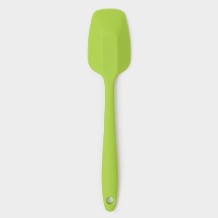 Изделие выполнено из пищевого силикона. Главное преимущество силиконовых лопаток – это то, что они не царапают поверхность посуды и не впитывают запахи, а также легко моются.
