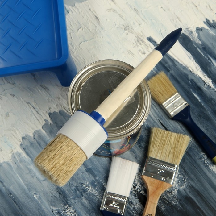 Круглая форма кисти подойдёт для окрашивания в труднодоступных местах, как углы, дверные проёмы и окна.
