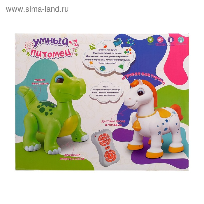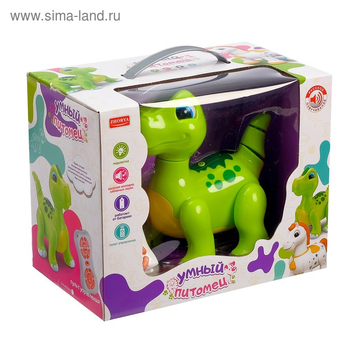 Робот динозавр «Умный питомец» ZHORYA, программируемый, на пульте управления, интерактивный: звук, свет, на батарейках, на русском языке