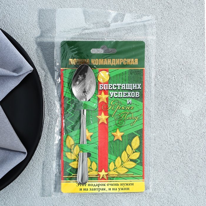 Для особых случаев — особый подарок. Ложка чайная с гравировкой «Командирская Ложка», на подарочной открытке, 3 х 14 см. может украсить ваше чаепитие, обед или ужин, сделать каждую встречу неповторимой.