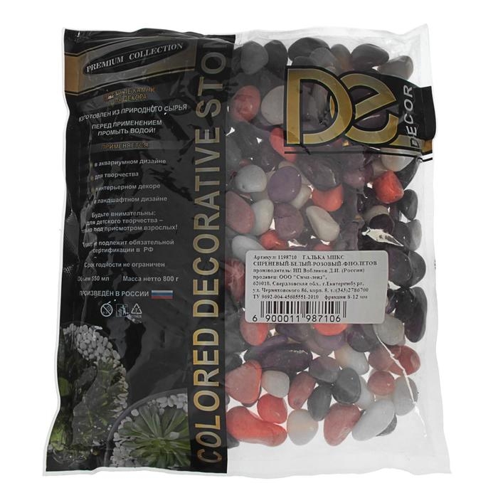 Грунт для аквариума "Галька цветная, сиреневый-белый-розовый-фиолетовый" 800 г фр 8-12 мм