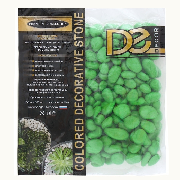 Грунт для аквариума "Галька цветная, салатовая" 800г фр 8-12 мм