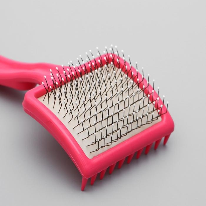 Щётка - пуходёрка средняя жесткая с каплями, основание 59 х 49 мм, розовая