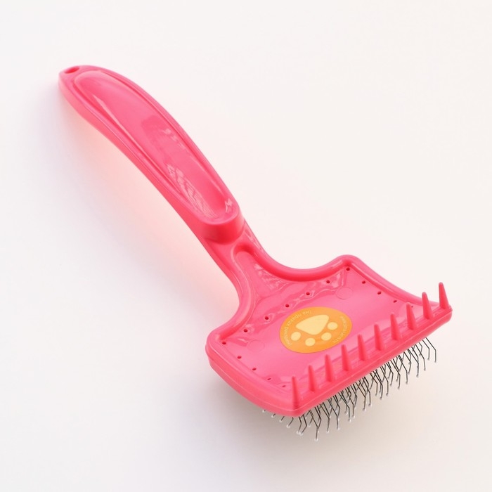 Пуходерка выполненная из нержавеющей стали, предназначена для ухода за шерстью кошек и собак. Пуходерка имеет частую металлическую щетину, что помогает удалять старую шерсть и стимулировать рост новой. Пуходерка служит для полного разъединения всех шерстинок. Она вычесывает отмершие волосы, вытягивая шерсть на полную длину. Удобная прорезиненная ручка не позволит выскользнуть пуходерке из рук даже во влажных условиях использования.