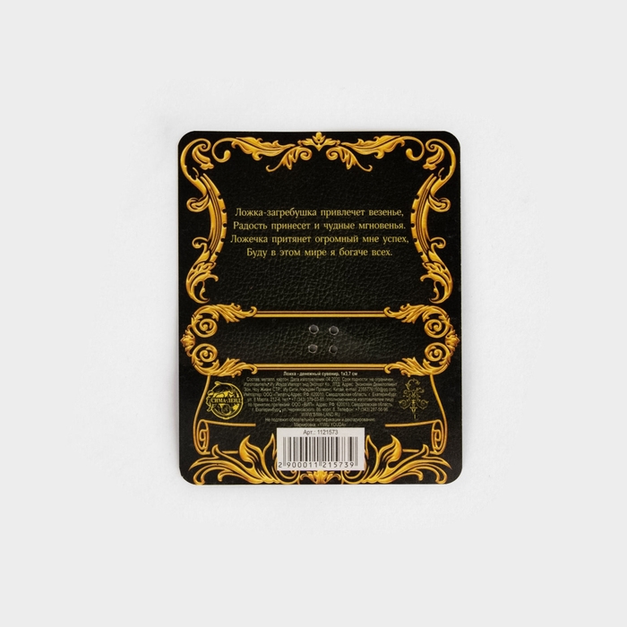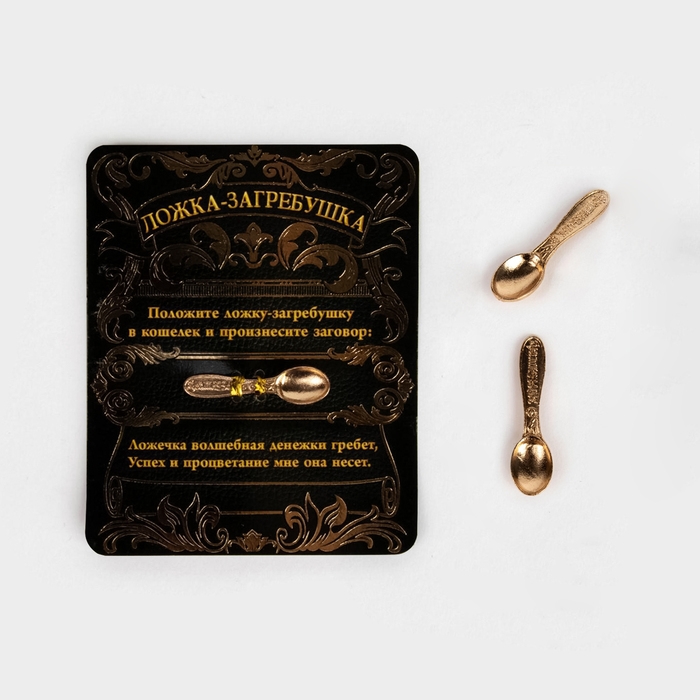 В финансовых вопросах нет незначительных деталей, поэтому специально для вас мы создали серию оберегов, которые привлекут благополучие. Кошельковый талисман: ложка загребушка денежный сувенир «Успех и процветание», 3,7 х 1 см. — изделие, которое будет защищать вас и приумножать ваши доходы. Чтобы активировать его, положите сувенир в кошелёк или сумочку и произнесите несложный заговор, указанный на упаковке.