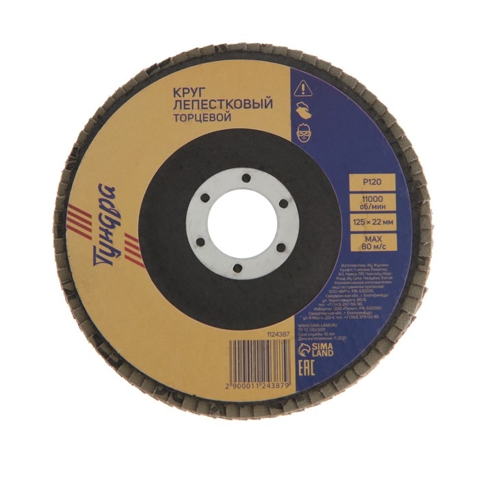 Круг лепестковый торцевой ТУНДРА, 125 х 22 мм, Р120