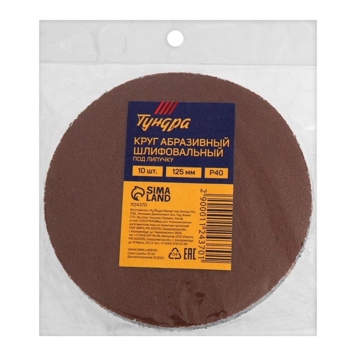 Круг абразивный шлифовальный под "липучку" ТУНДРА, 125 мм, Р40, 10 шт.