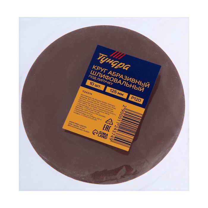Круг абразивный шлифовальный под "липучку" ТУНДРА, 125 мм, Р120, 10 шт.