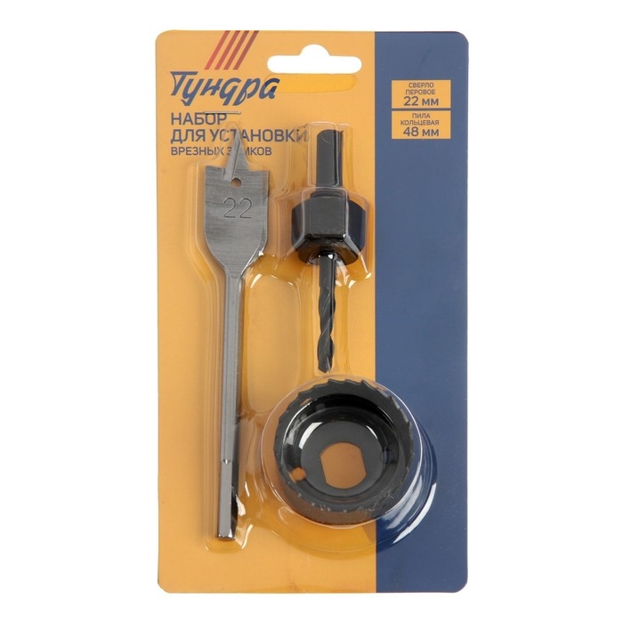 Набор для установки врезных замков ТУНДРА, сверло перовое 22 мм, пила кольцевая 48 мм