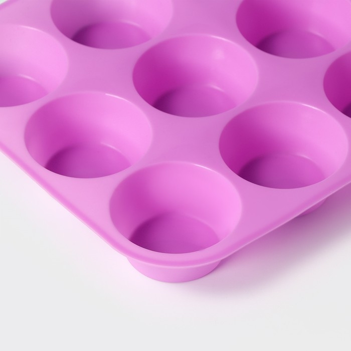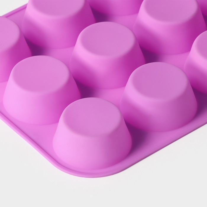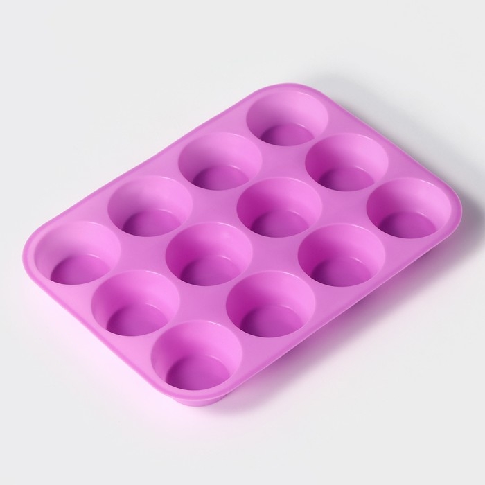 Форма для выпечки Доляна «Круг», силикон, 29×22×3 см, 12 ячеек, d=6,5 см, цвет сиреневый