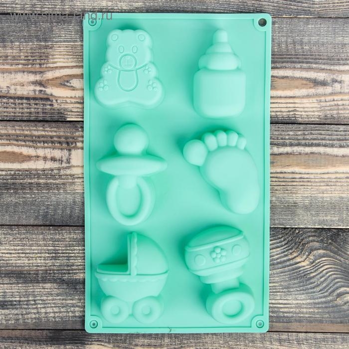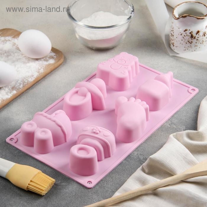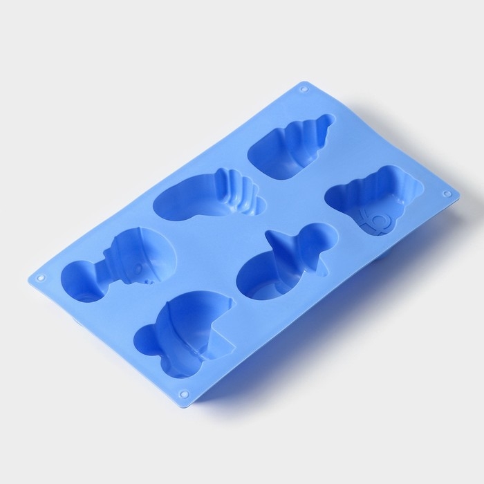 Форма для выпечки Доляна «Праздник.Для новорожденных», силикон, 28,5×16,5 см, 6 ячеек (8х5,7 см), цвет МИКС