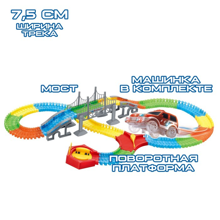 Автотрек «Магический Трек», гибкий, светится в темноте, 198 деталей, поворот