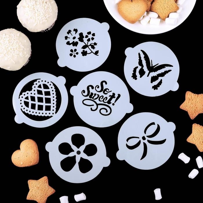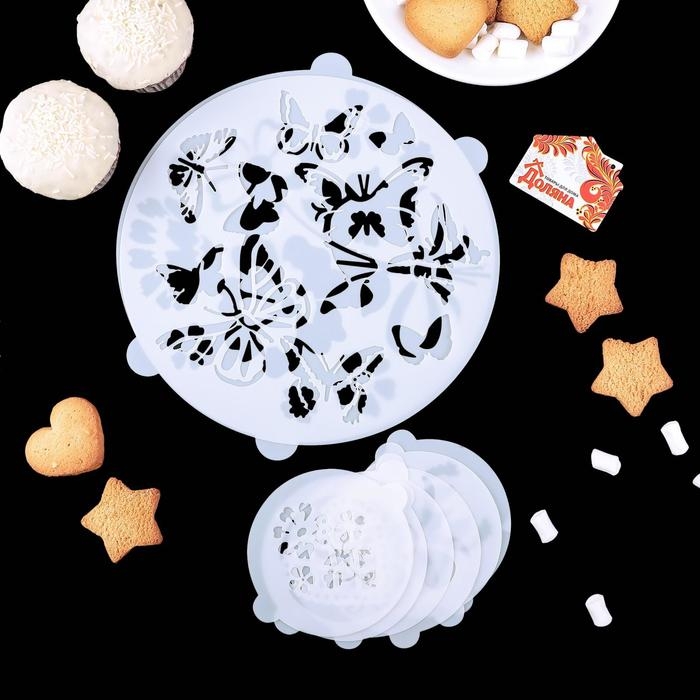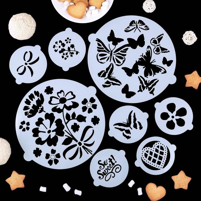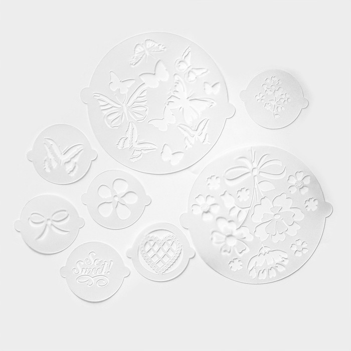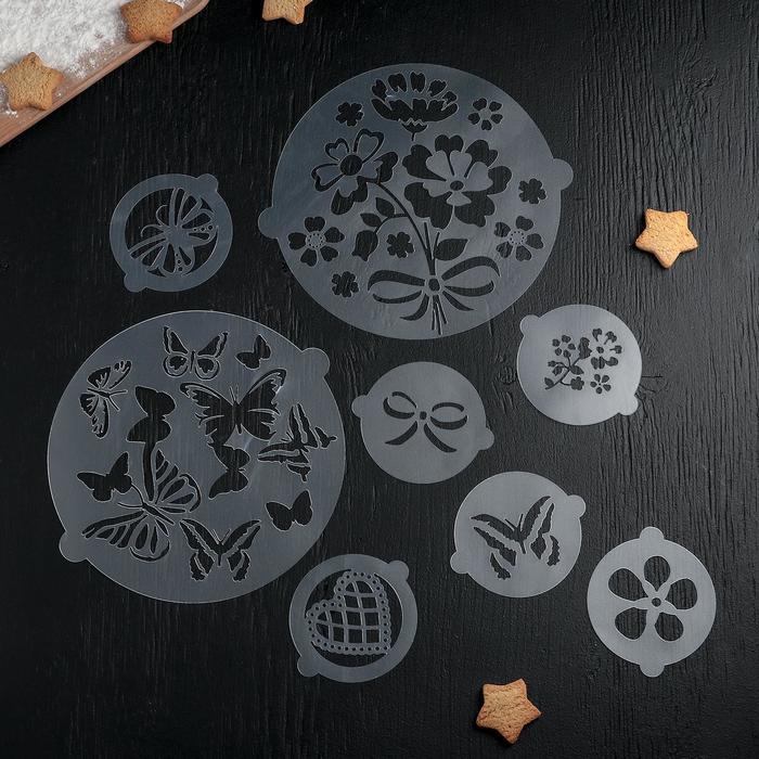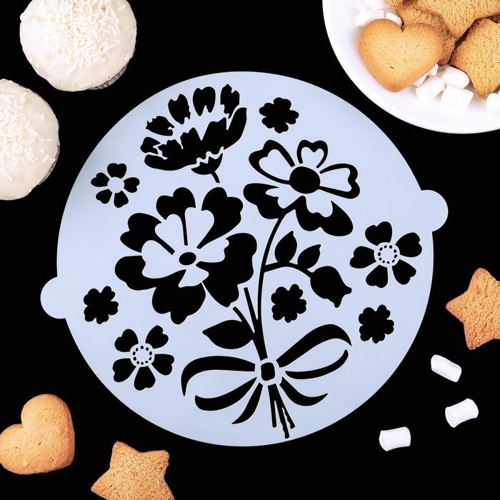 Набор кондитерских трафаретов для украшения выпечки «Букет», 8 шт: 2 шт d=20 см, 6 шт d=8 см