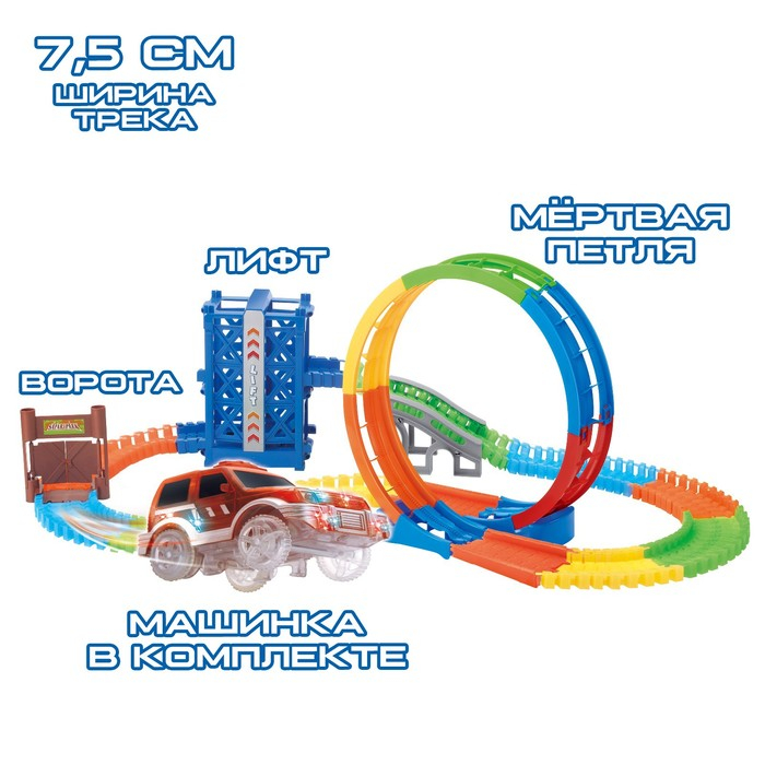 Автотрек «Магический Трек», гибкий, светится в темноте, 133 детали, лифт, мёртвая петля