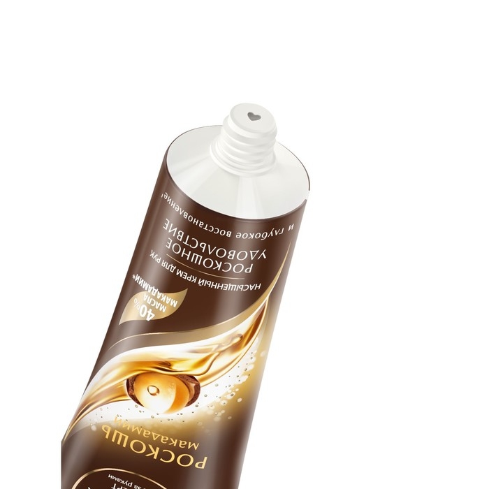 Содержит в себе 40% масла макадамии*, которое дарит коже рук роскошь и насыщенное питание. Крем глубоко проникает в кожу, питая и восстанавливая ее. МАСЛО МАКАДАМИИ - это жирное масло, получаемое из плодов австралийского ореха. Масло богато витаминами группы В и РР, триглицеридами жирных кислот. Легко впитывается в кожу, смягчает и хорошо питает ее. Способствует поддержанию водного баланса кожи, обладает хорошим кондиционирующим эффектом. ПАНТЕНОЛ способствует восстановлению клеток, обладает увлажняющим и разглаживающим действием. АЛЛАНТОИН - бесцветное кристаллическое вещество натурального происхождения. Оказывает смягчающее и увлажняющее действие, стимулирует обновление клеток эпидермиса. ГЛИЦЕРИН оказывает смягчающее действие на кожу, увлажняет ее. Небольшие по размеру молекулы глицерина способны преодолевать липидный барьер кожи и проникать в глубокие слои эпидермиса. Исследования показали, что глицерин способствует нормальному процессу жизнедеятельности клеток эпидермиса. ВИТАМИН В3 предотвращает появление дерматитов, ряда кожных заболеваний. Способствует заживлению ран на коже. Насыщенная текстура крема глубокоꞌ питает и восстанавливает кожу, оставляя мягкую защиту для сохранения красоты Ваших рук. Подарите Вашим рукам идеальный уход и энергию!