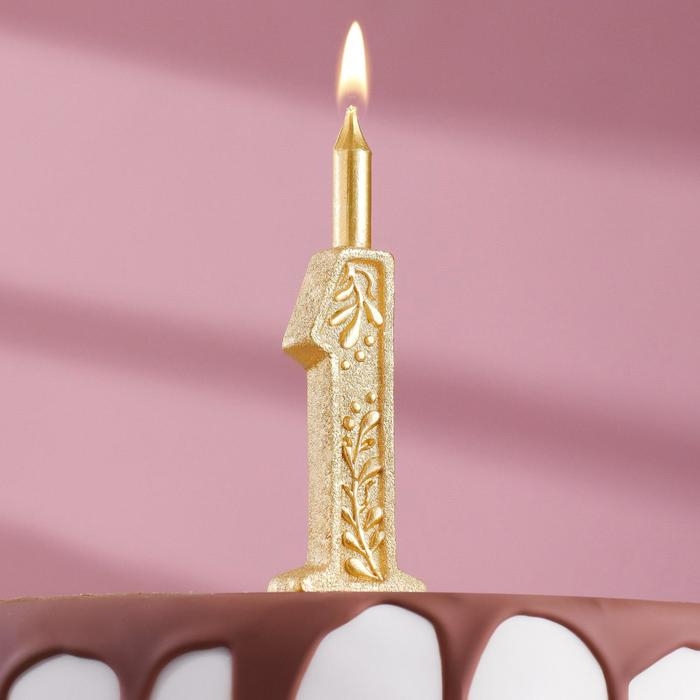 Свеча для торта цифра "Золотой узор", 10,2 см, цифра "1"