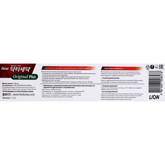 Способ применения: Нанести небольшое количество пасты на влажную зубную щетку, чистить зубы 2-3 минуты, затем прополоскать рот водой.