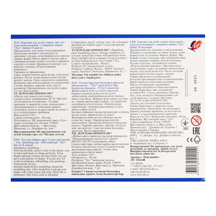 Пластилин восковой "Фантазия"в яркой подарочной упаковке предназначен для широкого круга покупателей самого разного возраста. Пластилин данной линейки, благодаря специально разработанной рецептуре, отличается от классического пластилина мягкостью и эластичностью, очень красивой и богатой палитрой цветов. Перед началом лепки не требует предварительного разминания, при этом сохраняет все свойства классического пластилина. Идеально держит форму, не липнет к рукам и не пачкается. Имеет чистые, красивые цвета, на которых останавливается детский взгляд. Можно комбинировать с классическим пластилином. Пластилином можно не только лепить, но и рисовать по бумаге и картону. Два вида дизайна.